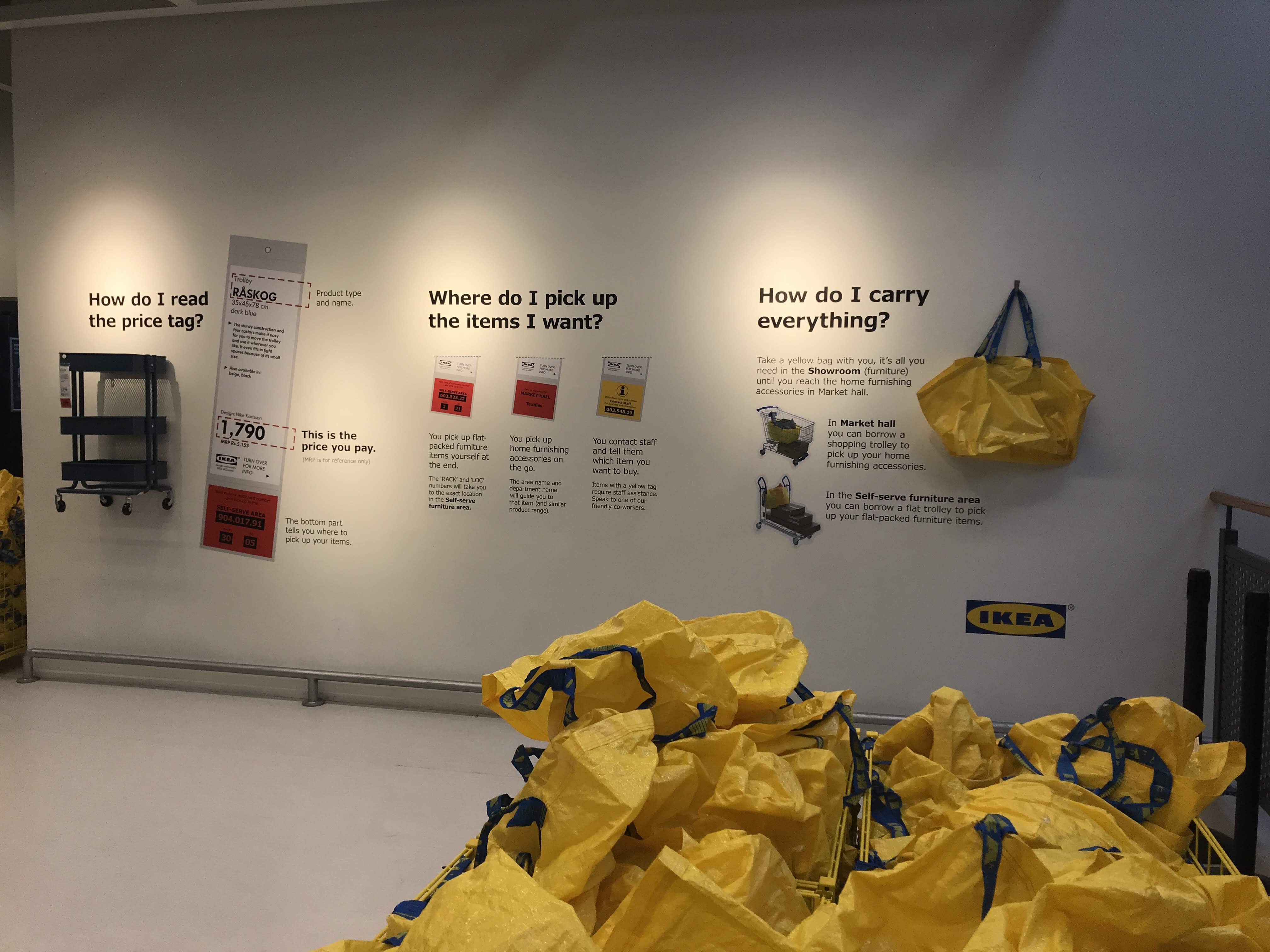 Why the stool? It’s affordable and you can’t add it to your bag yet. This makes the customer find out the way to buy it. It also forces everyone to understand how to go about exploring the rest in the IKEA big store. At this point, I went to the coworker asking her how to buy the stool? Then, we got the blue trifold leaflet and the showroom map? Experience design!! More about this later